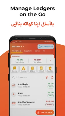 DigiKhata صرف حساب کتاب کا ذریعہ نہیں، بلکہ یہ آپ کو کاروبار کو وسعت دینے میں بھی مدد دیتا ہے۔ ادھار کی وصولی کو 3 گنا تیز بنانے کے لیے SMS یا واٹس ایپ کے ذریعے ادائیگی کے لنکس بھیجیں۔ فنگر پرنٹ یا پن کوڈ لاک کے ساتھ اپنے تمام ڈیٹا کو مکمل محفوظ رکھیں۔ لامحدود مفت SMS اور واٹس ایپ ریمائنڈرز کے ساتھ ادھار جلد واپس حاصل کریں۔ اگر آپ کے کاروبار میں ایک سے زیادہ شراکت دار ہیں تو وہ بیک وقت، کہیں بھی، کسی بھی وقت ایک ہی کھاتے کو استعمال کر سکتے ہیں۔ یہ ایپ متعدد زبانوں کی حمایت کرتی ہے جن میں اردو، انگریزی، عربی، ہندی، سندھی اور فارسی شامل ہیں، تاکہ آپ اپنی پسند کی زبان میں کام کر سکیں۔