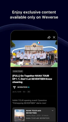 اپنے پسندیدہ فنکاروں کے سرکاری مرچنڈائز اور البمز کی خریداری کے لیے Weverse کے 'Shop' ٹیب کا رخ کریں، جہاں آپ اپنے آرڈر کی تاریخ بھی دیکھ سکتے ہیں اور بروقت اطلاعات بھی حاصل کر سکتے ہیں۔ 'Fan Letters' کے ذریعے اپنے جذبات کو فنکاروں تک پہنچائیں؛ مختلف ٹیمپلیٹس اور سجاوٹ کی خصوصیات کا استعمال کرتے ہوئے اپنے پیغامات کو تخلیقی انداز میں لکھیں اور انہیں ذاتی نوعیت دیں۔ اپنی مداح کی سرگرمیوں کو 'Collection' میں جمع کریں، جہاں آپ اپنی شرکت اور وفاداری کے بدلے بیجز اور ڈیجیٹل کلیکٹیبلز جیسے تصاویر اور ویڈیوز کما سکتے ہیں۔ مخصوص مشن مکمل کر کے اپنی کمیونٹی میں اپنی کامیابیوں کو نمایاں کریں۔ Weverse خصوصی میڈیا مواد کی ایک وسیع رینج بھی پیش کرتا ہے، جس میں سب ٹائٹلز بھی شامل ہیں، اور باضابطہ ممبرشپ کے حاملین کے لیے منفرد فوائد اور خصوصی مواد بھی دستیاب ہے۔